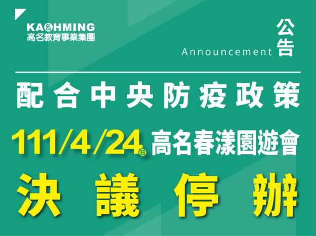因應高雄市疫情現況,考量防疫優先,高名原訂4/24星期天上午在高美館舉辦之「春漾園遊會」決議停辦,相關活動訊息…