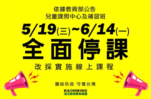 配合政府防疫,教育部宣布全國各級學校全面停課期間延長至7/2(五),高名教育事業集團為孩子及全民安全考量,全班…